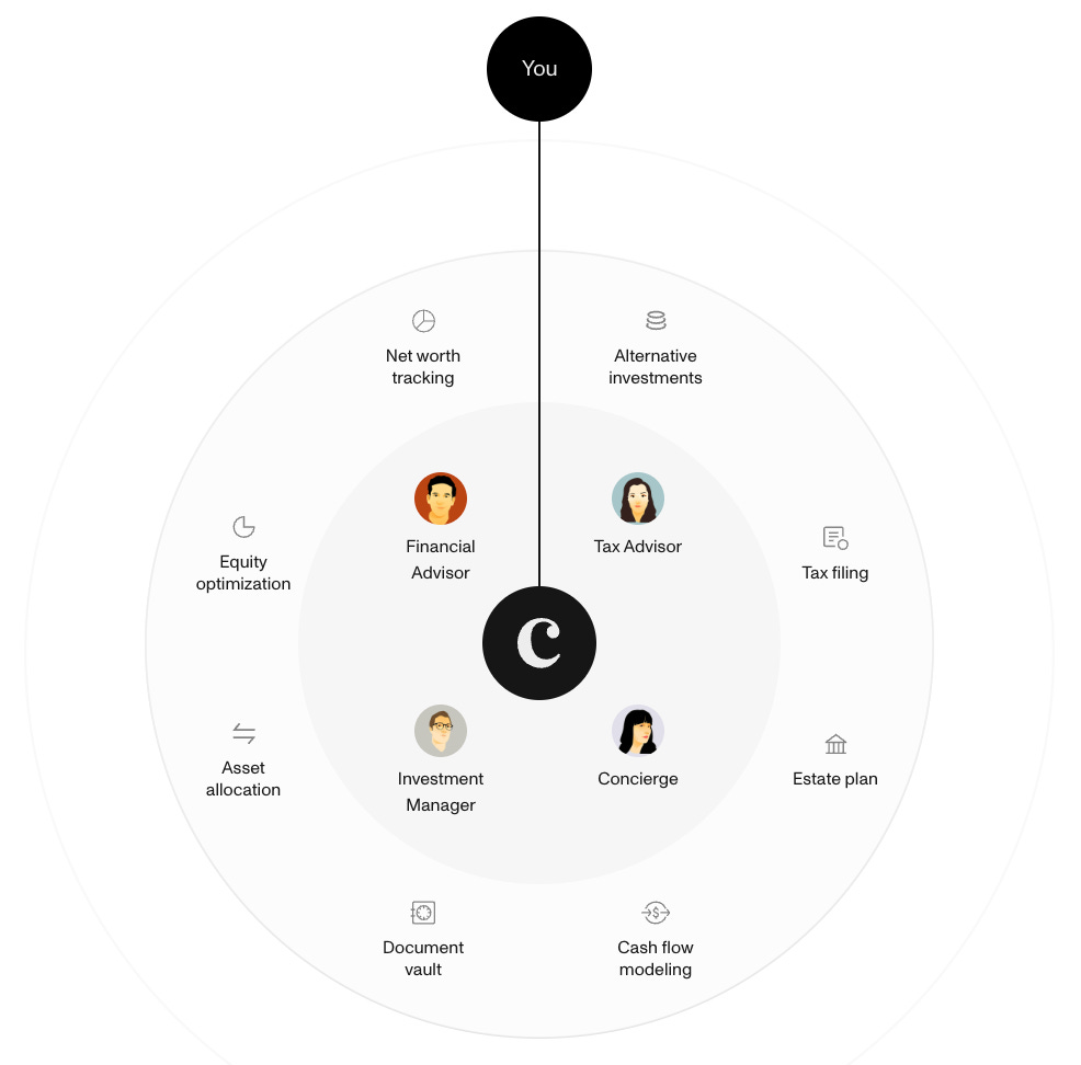 In January they raised a $25mn Series B. Compound has since grown into an all-in-one wealth management platform for tech employees centered around a wealth dashboard with visibility into public and private assets bundled with financial advisors, tax advisors and investment managers. They offer:
