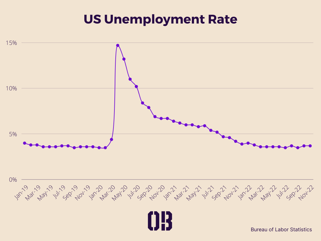 Tech layoffs, however, have barely affected unemployment in the US⌠so far. At 3.7% in November, the US unemployment rate has remained fairly steady over 2022. Why does unemployment seem unscathed?